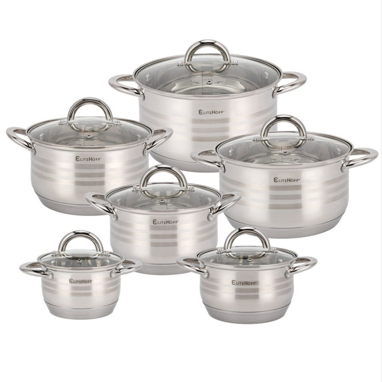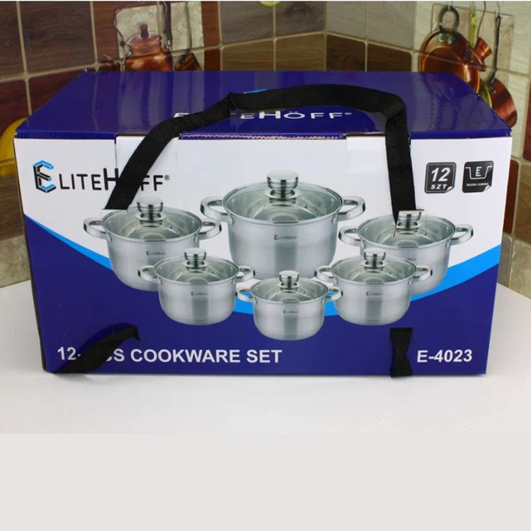 سرویس قابلمه استیل الیت هوف ۱۲ پارچه ELITEHOFF نچسب ضدزنگ با کفی چدن